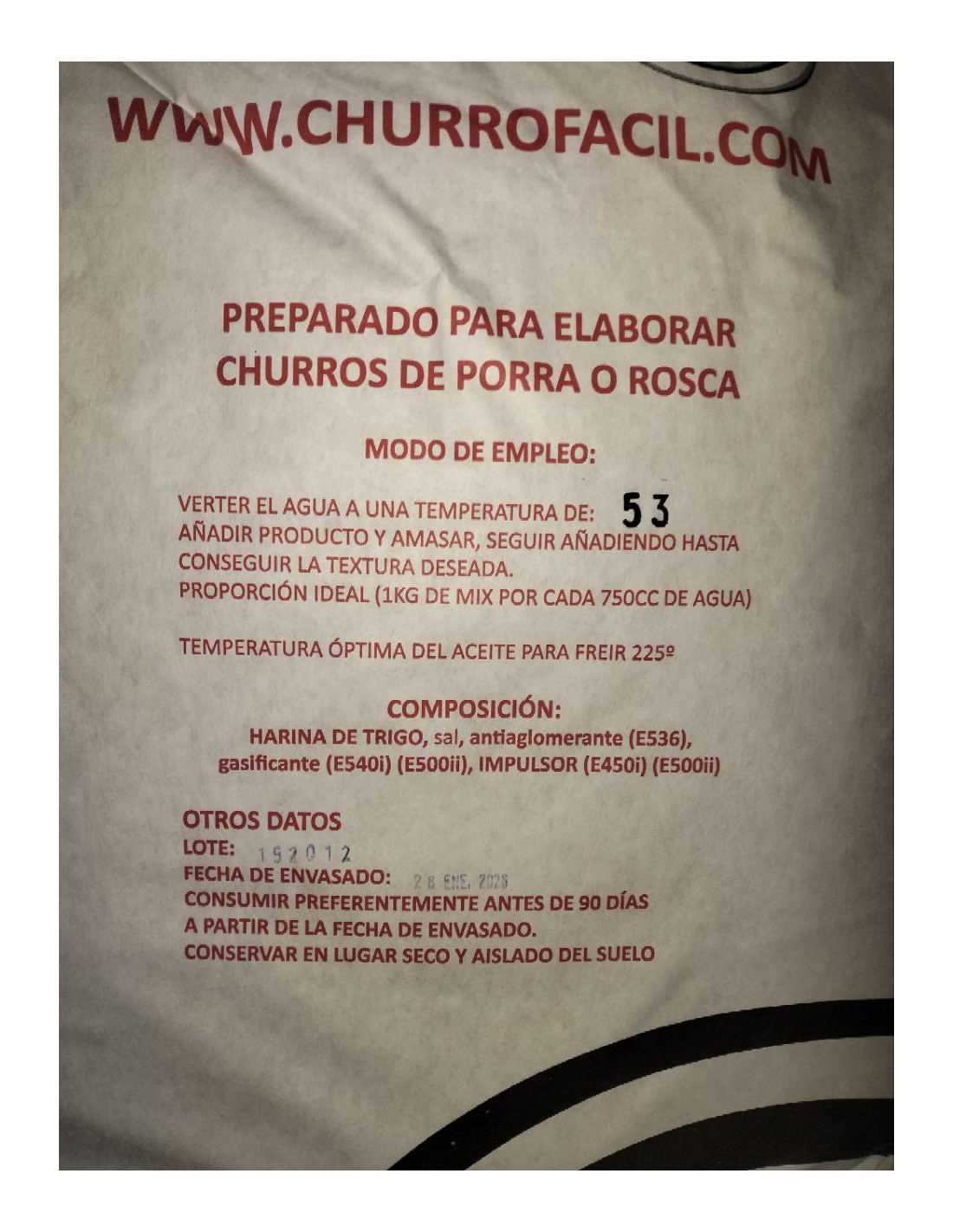 MIX PREPARADO PARA CHURROS DE ROSCA O PORRA TAHONA SACO 20KG