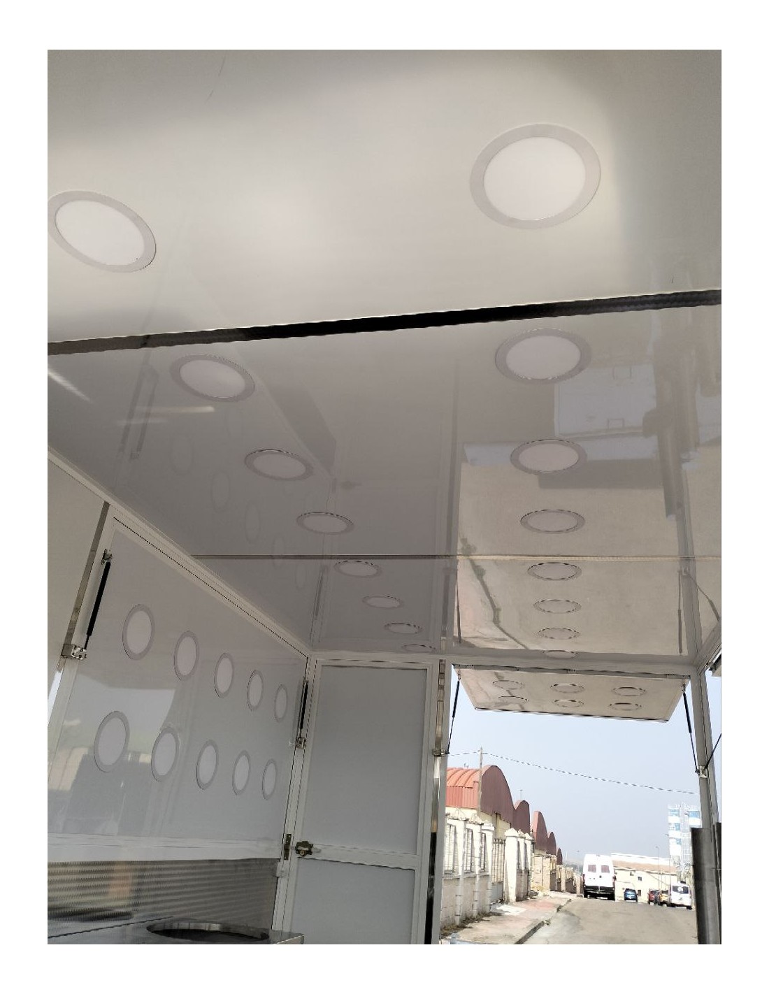 10 focos empotrados en cada viseras y 6 focos empotrados en la visera cerca de la lanza